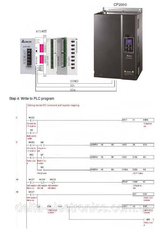 Крім того ПЧ може виступати майстром (або слейв) звичайної мережі Modbus і задавати уставки і зчитувати поточні значення наприклад з Микролов, контролерів Delta або інших зовнішніх Modbus пристроїв.
